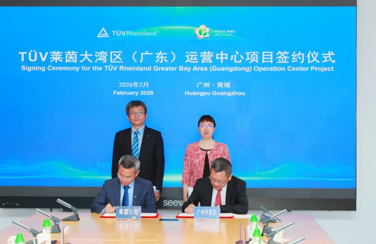 TÜV Rheinland Greater China, an international independent third-party testing, inspection, and certification organization, recently signed a formal project cooperation agreement with the People’s Government of Huangpu District, Guangzhou, announcing its investment to build the TÜV Rheinland Greater Bay Area (Guangdong) Operation Center in the Guangzhou Development District.